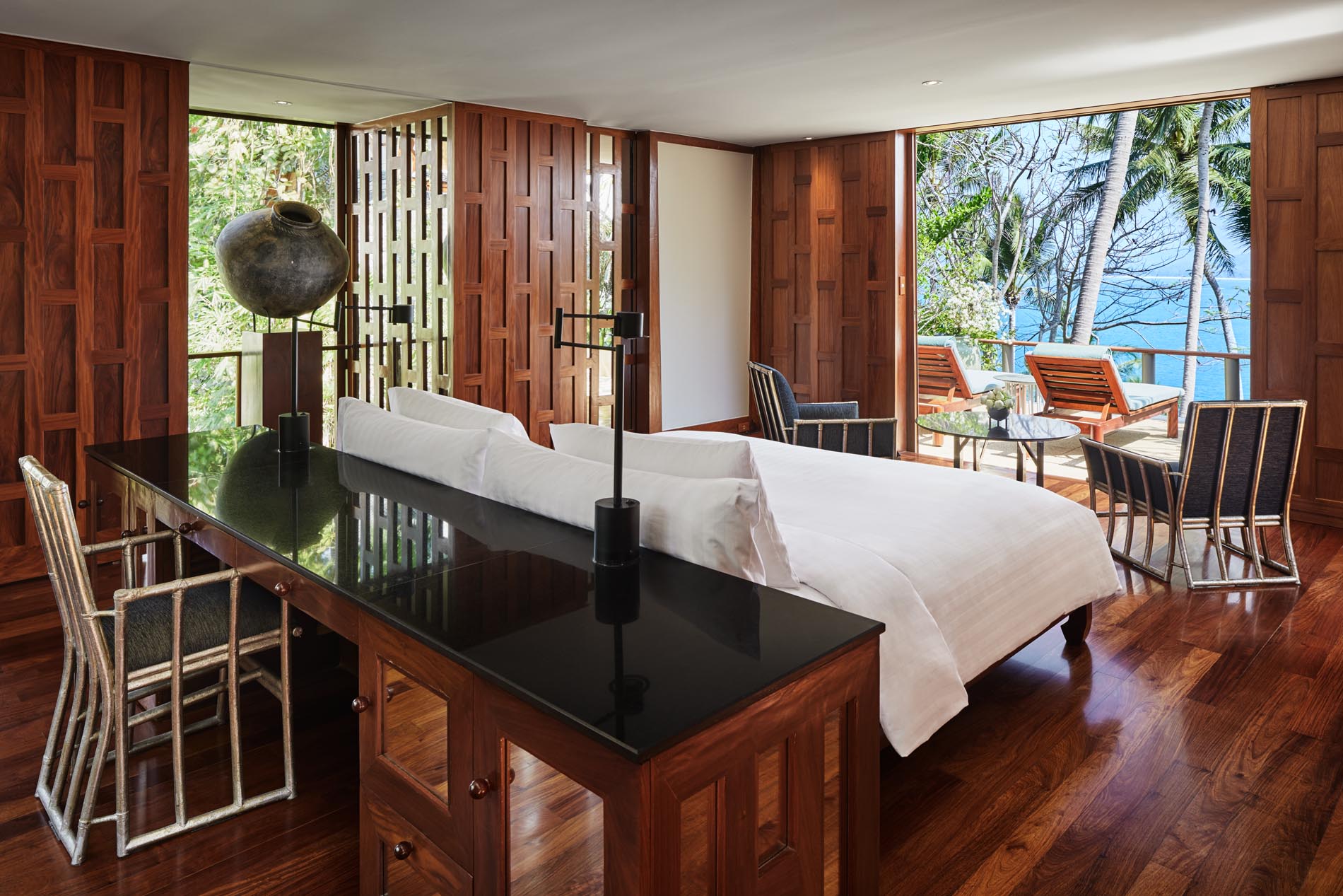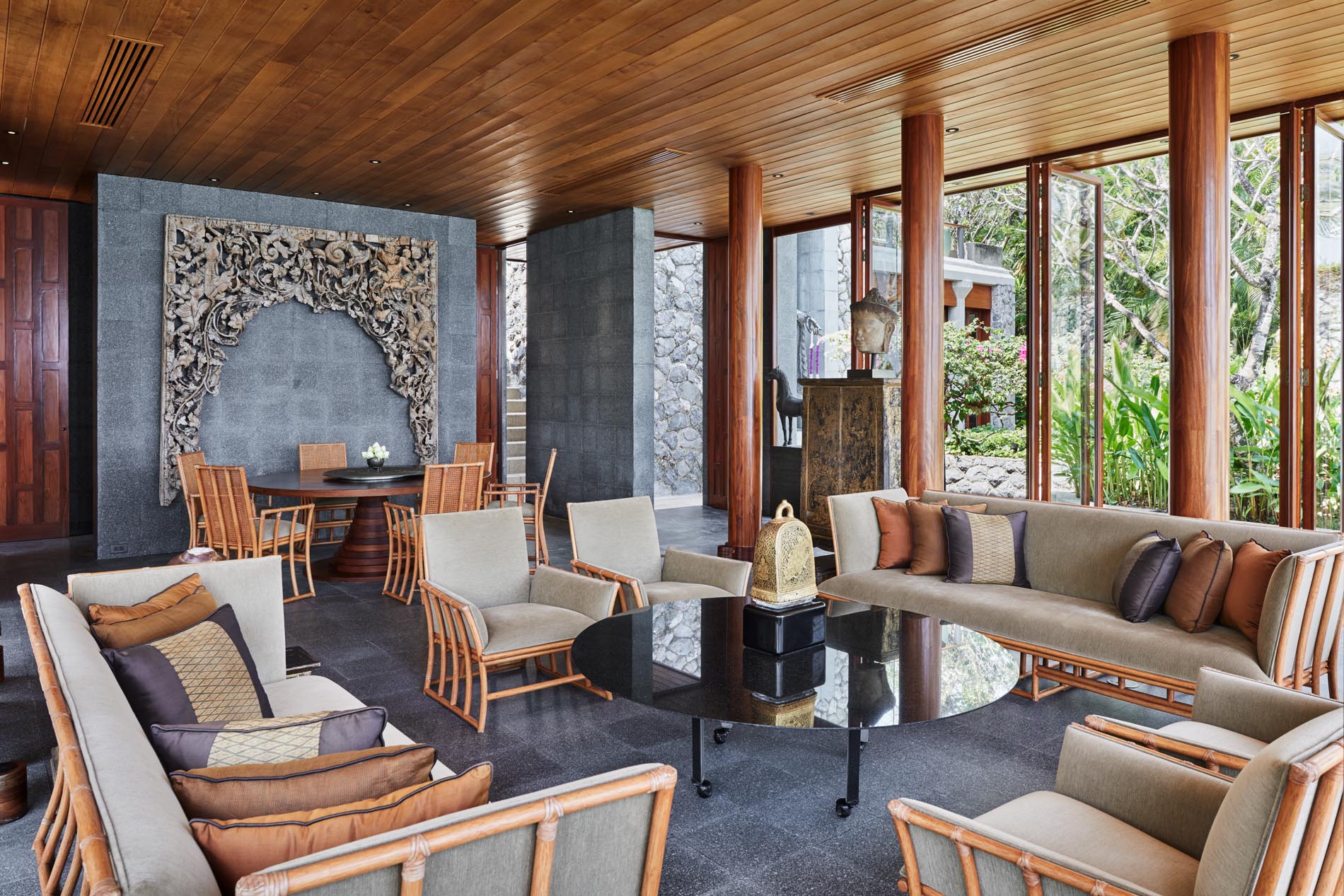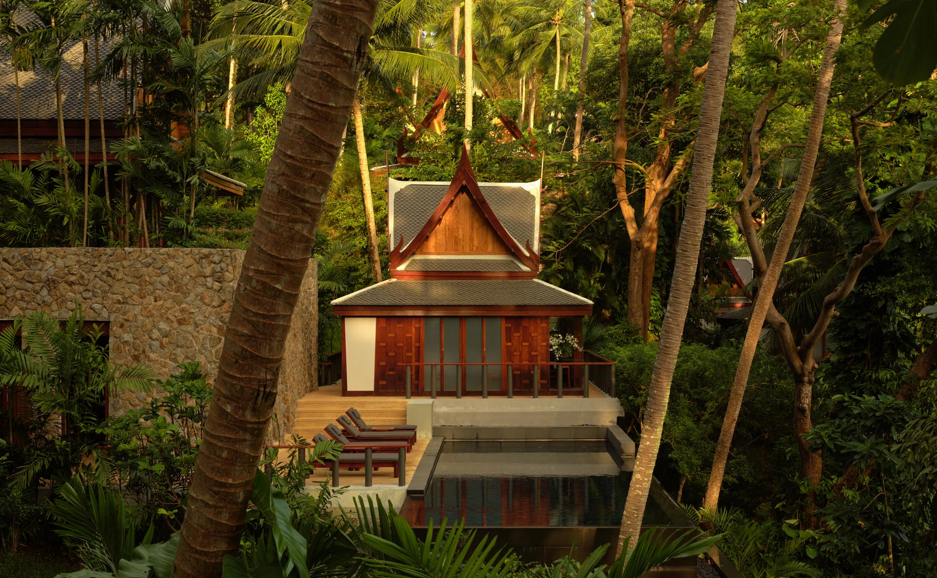Das Amanpuri verfügt über 40 Pavillons und 40 Villen, die sich harmonisch in die Natur einfügen. Inspiriert von der Architektur der alten Königsstadt Ayutthaya spiegeln geschwungene Dächer, warme Hölzer und klare Linien die kulturelle Identität des Landes wider.