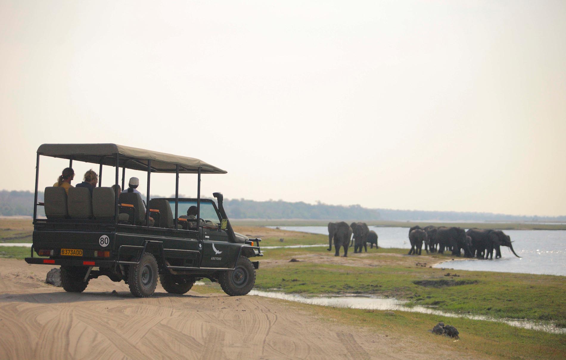 Tägliche Pirschfahrten starten im ersten Morgenlicht, wenn Elefanten, Büffel und Antilopen den Fluss aufsuchen und Raubkatzen aktiv sind. Am Nachmittag folgen weitere Game Drives entlang des Chobe Flusses, einer der besten Regionen Afrikas für große Elefantenherden.