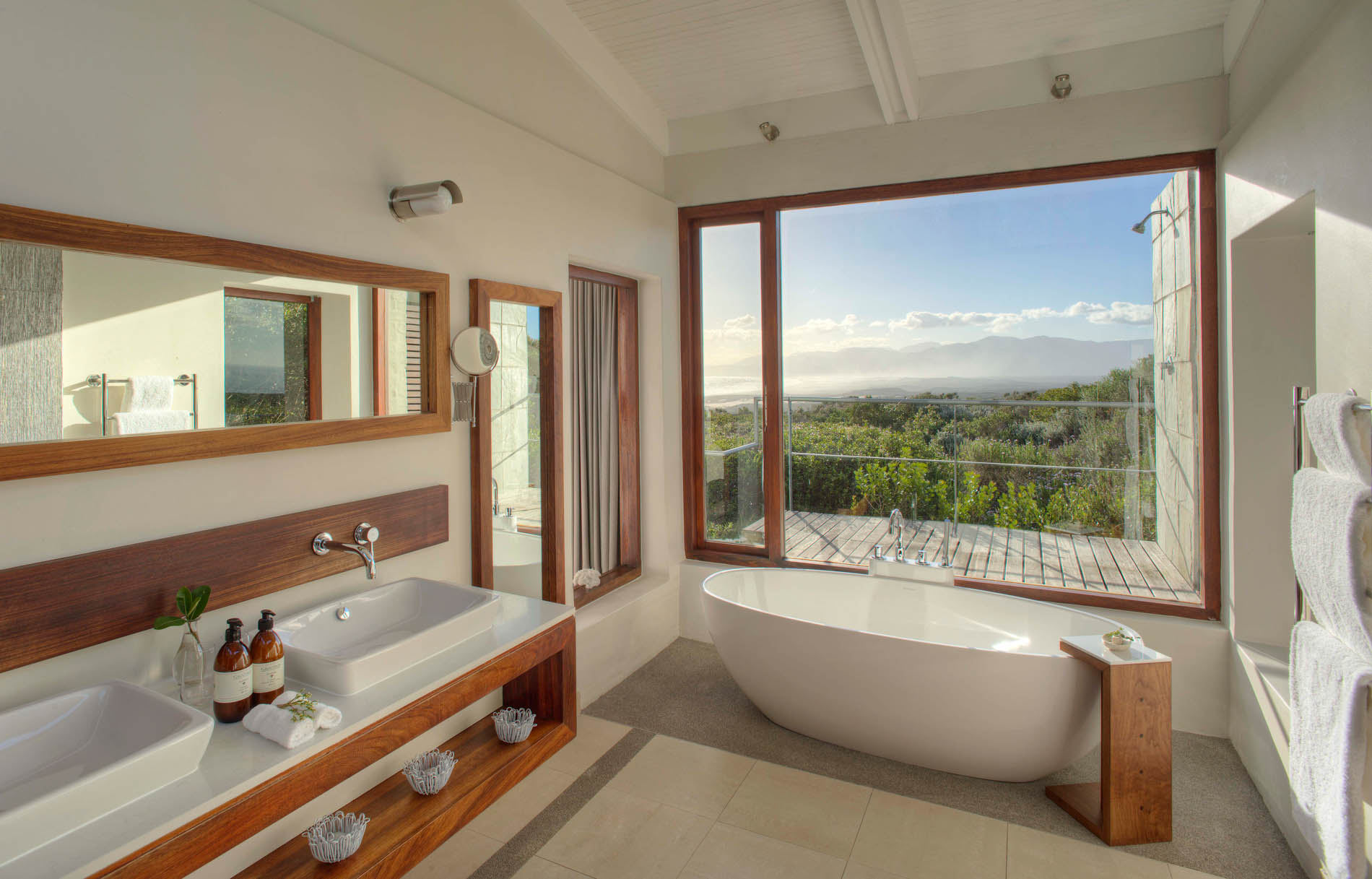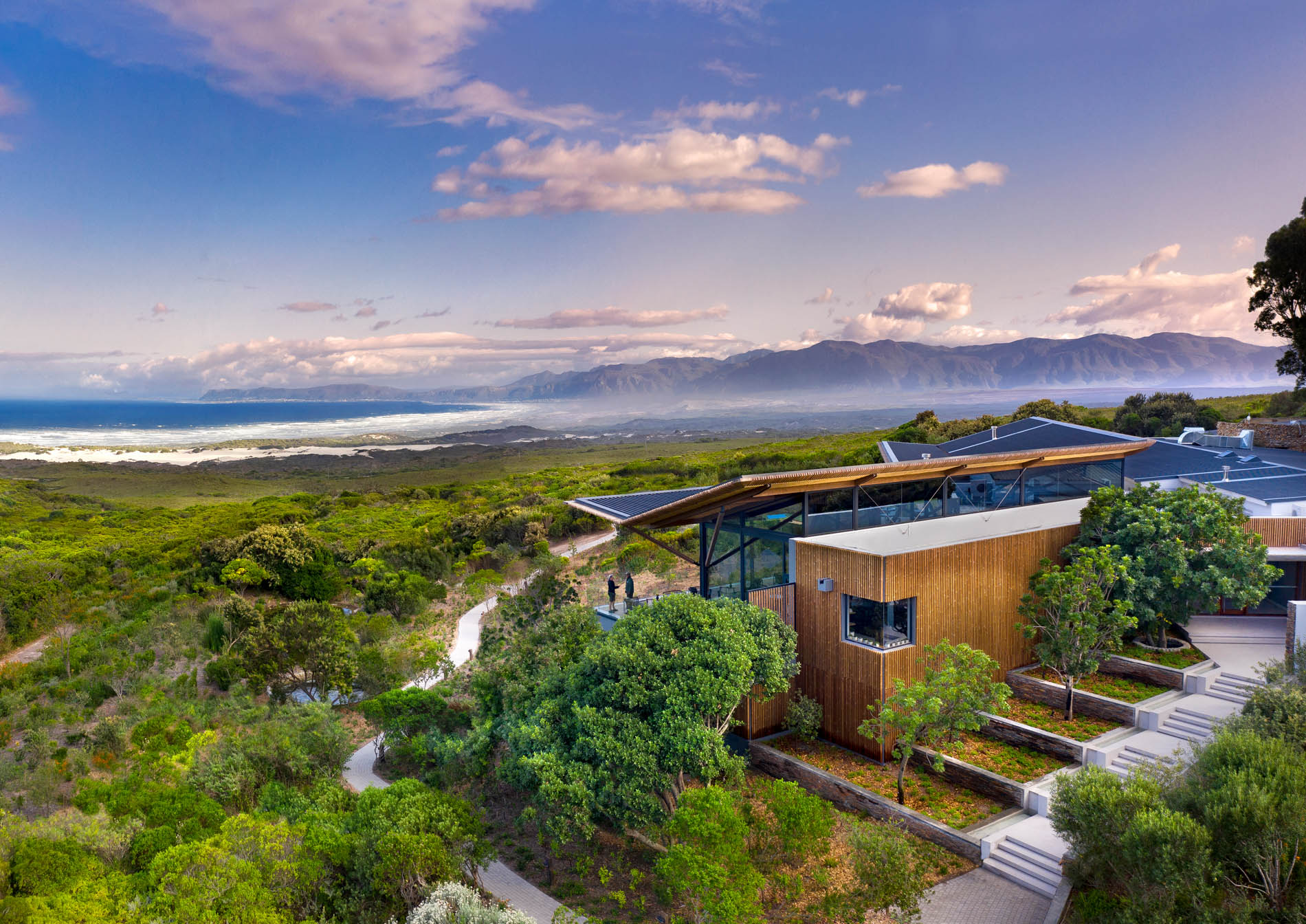 Das Reserve beherbergt zwei 5-Sterne-Lodges und zwei private Villen. In der familienfreundlichen Garden Lodge wohnen Sie in 11 freistehenden Suiten mit privaten Decks und Panorama auf Meer und Fynbos. Die Forest Lodge ist Ihr romantischer Rückzugsort mit 16 Suiten, erhöht gelegen und über Holzstege durch den Milkwood-Wald verbunden. Beide Lodges verfügen über Restaurant, Lounge, Weinkeller, Pool und kleine Spa-Bereiche. Die Villen mit 4 und 6 Schlafzimmern bieten Koch, Butler, Guide und beheizte Außenpools. Alles ist auf Privatsphäre, Aussicht und einen eleganten, naturnahen Stil ausgerichtet, damit Sie sich vom ersten Schritt an zuhause fühlen.