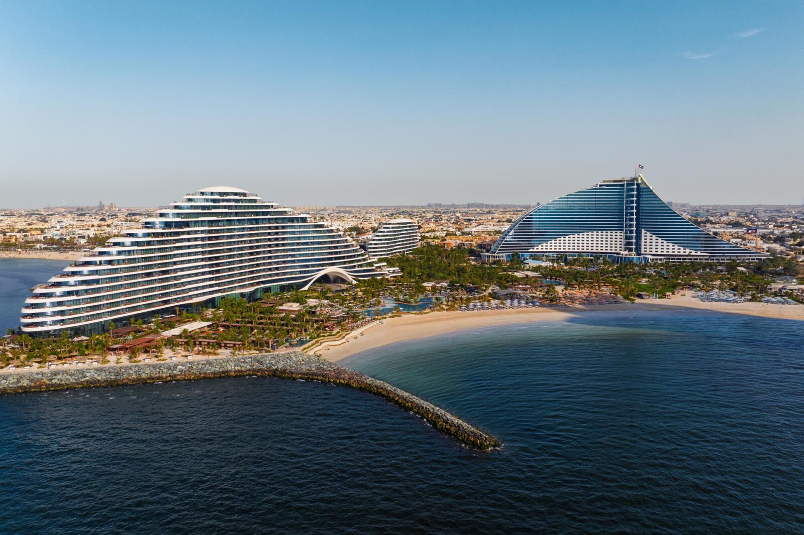 Das Jumeirah Marsa Al Arab liegt an einer privaten Bucht mit Blick auf die ikonische Form des Burj Al Arab und die Skyline von Dubai. Das Resort öffnet sich zur See und liegt gleichzeitig nah an Dubais exklusivsten Attraktionen. Ein idealer Ausgangspunkt für Ihre Rundreise durch die Vereinigten Arabischen Emirate. Hier treffen Sie auf elegante Ruhe am Wasser und die Energie der Stadt, die niemals schläft. Der eigene Superyacht-Jachthafen mit 82 Liegeplätzen macht das Hotel besonders für Gäste, die maritimen Lifestyle lieben. Die Atmosphäre erinnert an Riviera-Glamour der 60er Jahre, nur neu interpretiert für heute. Sonnenuntergänge spiegeln sich in Glas und Wasser, während Sie auf der Terrasse die Ankunft privater Yachten beobachten.