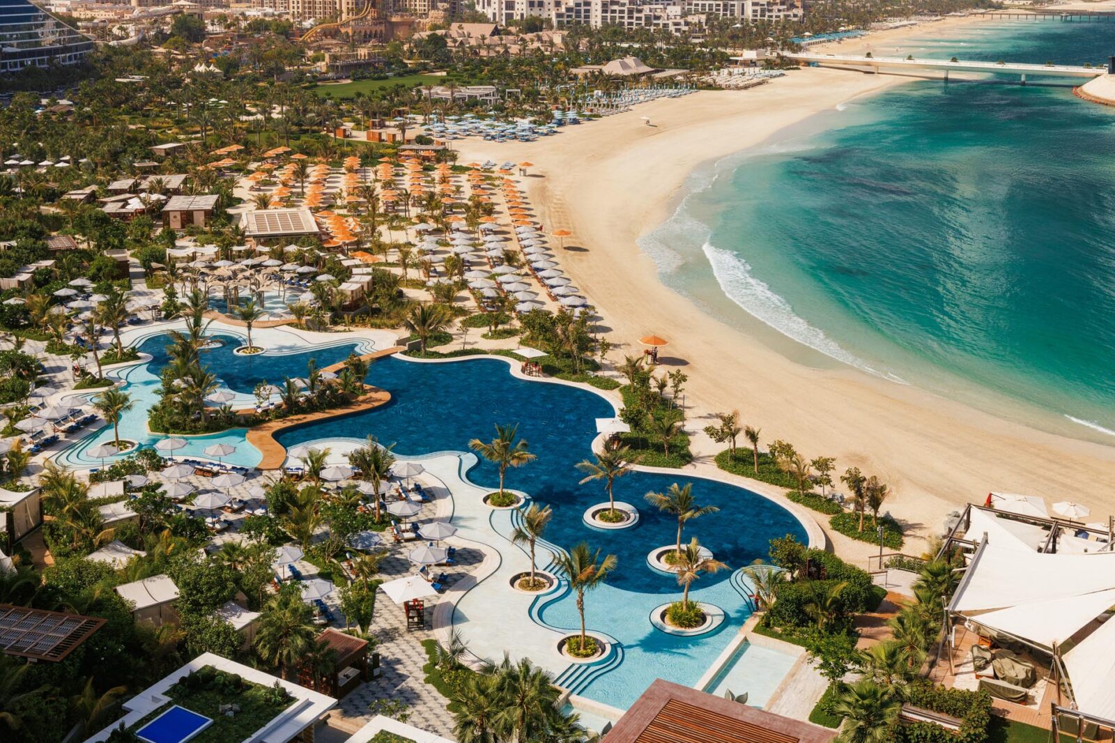 Zum Resort gehören zwei private Strände, ein exklusiver Beach Club, ein Adults-only Bereich am Pool und mehrere weitere Pools, alle mit Blick auf den Burj Al Arab. Das Talise Spa ist ein Refugium auf drei Etagen, eine Etage exklusiv für Damen. 13 Behandlungsräume, private Terrassen, Sauna, Dampfbad, ein gemischter Hammam, ein 20 Meter Innenpool und ein modern ausgestattetes Fitnessstudio verbinden Erholung und Training. Nach dem Workout entspannen Sie mit Meerblick und warmer Brise.