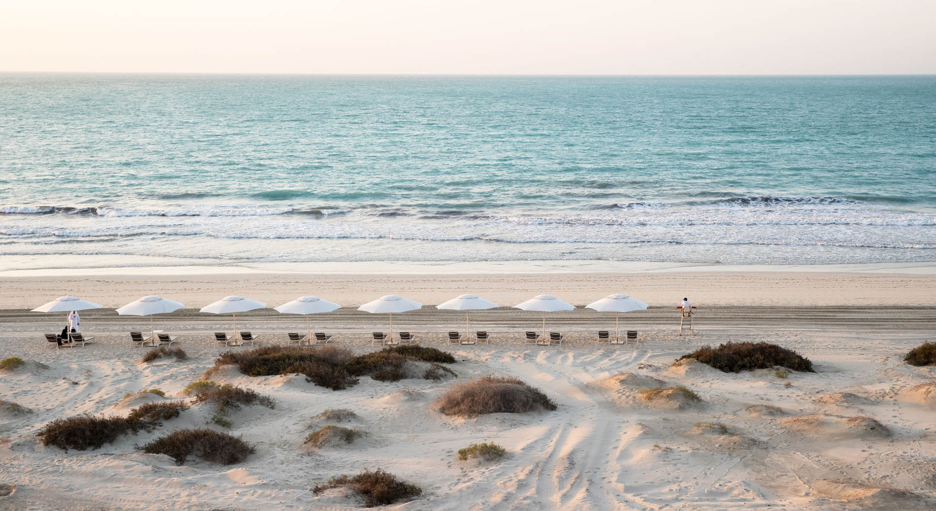 Zum Gesamtgefühl gehören auch Kulinarik, Wellness und Social Spaces. Mehrere Restaurants und Bars, von entspannt barfuß bis elegant mediterran, liegen direkt am Strand oder mit Blick auf den Persischen Golf. Das Rooftop-Konzept serviert Signature Drinks bei Sonnenuntergang über dem Wasser, während die Poolbar sogar Sitzplätze im Wasser bietet. Gäste finden internationale Küche von Live-Cooking über levantinische Aromen bis zu italienischen Klassikern, Afternoon Tea im Majlis und eine Sports Lounge, die als einzige auf Saadiyat Island auch vierbeinige Begleiter willkommen heißt.