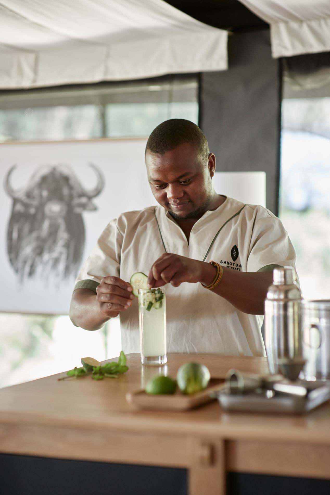 Das Hauptzelt beherbergt eine Lounge, Bar und einen offenen Speisebereich. Hier werden regionale und internationale Gerichte serviert, begleitet von erlesenen Weinen und dem Blick auf die Kraterlandschaft. Abends tauchen Laternen das Camp in warmes Licht, während das Knistern des Feuers die Geräusche der Wildnis begleitet.