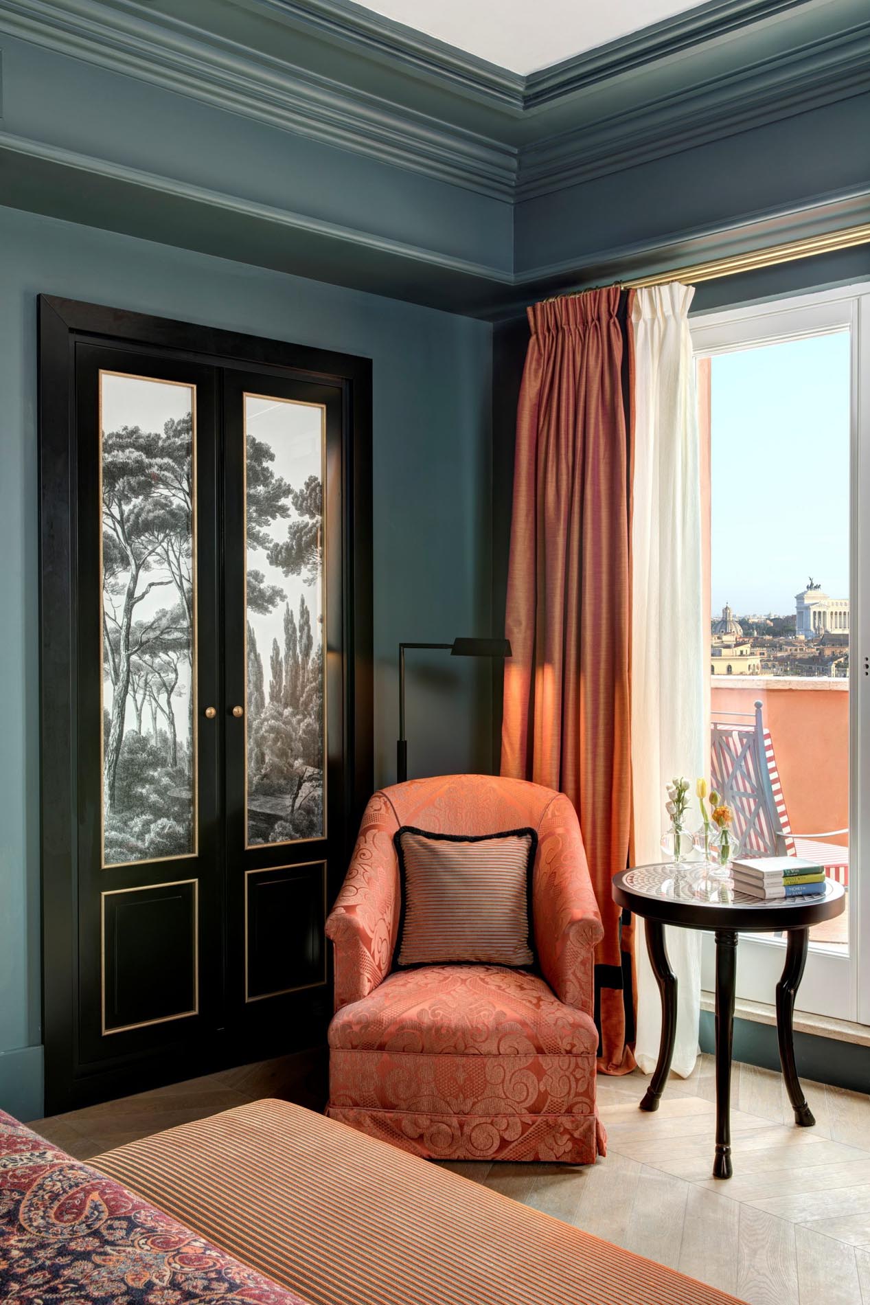 Das Rocco Forte Hotel de la Ville verfügt über 89 Zimmer und 15 Suiten. Zu den bekanntesten zählen die Canova Suite, die Roma Suite und die De la Ville Suite, deren Terrassen auf Rom blicken. Die Gestaltung verbindet klassisch römische Eleganz mit modernen Farben, feinen Stoffen und einer Leichtigkeit, die dem Haus seinen eigenständigen Charakter gibt.