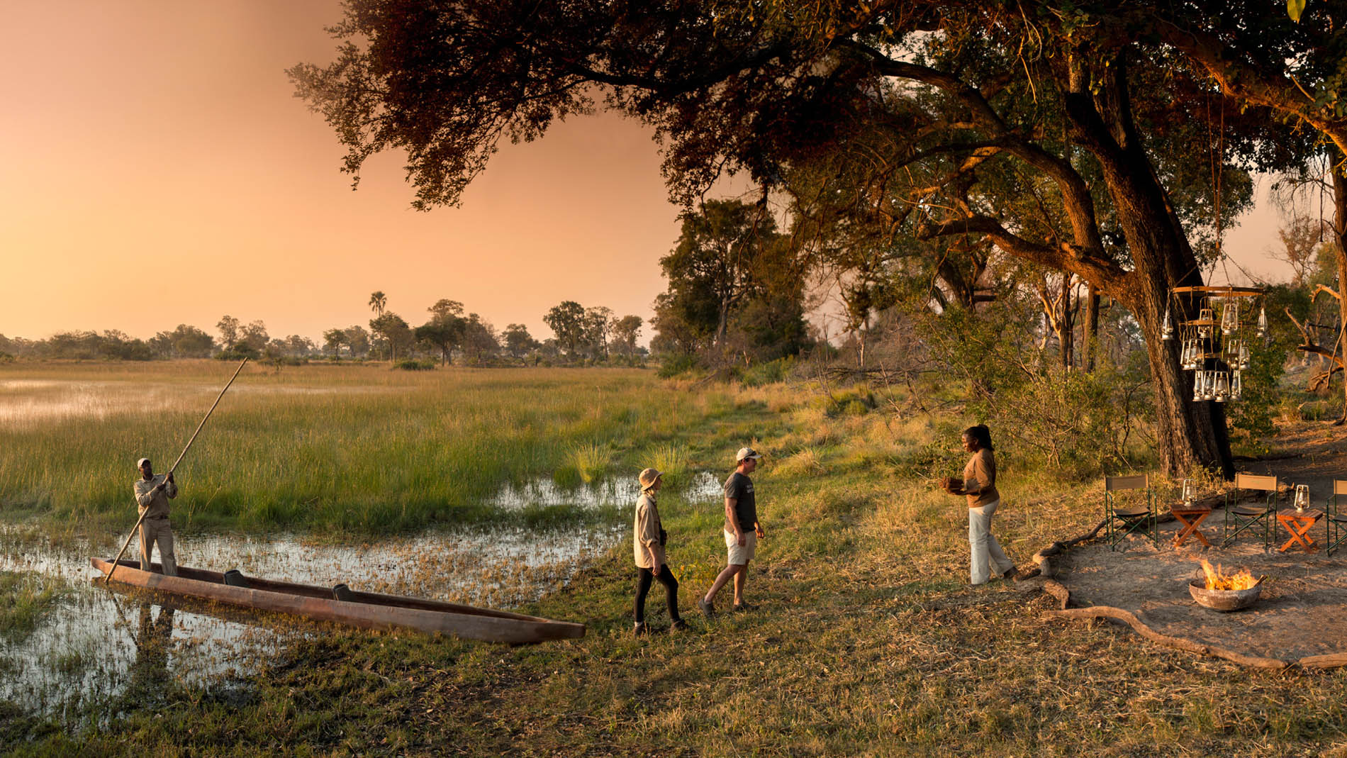 andBeyond Nxabega Under Canvas bietet zusätzlich saisonale Wasseraktivitäten wie Mokoro-Fahrten, bei denen Sie lautlos durch Kanäle gleiten und die leisen Seiten des Deltas entdecken. Walking Safaris, Vogelbeobachtungen und Sternenhimmel-Erlebnisse ergänzen das Programm. Diese Camps sind ideal für Paare und Individualreisende, die eine entschleunigte Luxusreise mit echtem Safari-Charakter suchen.