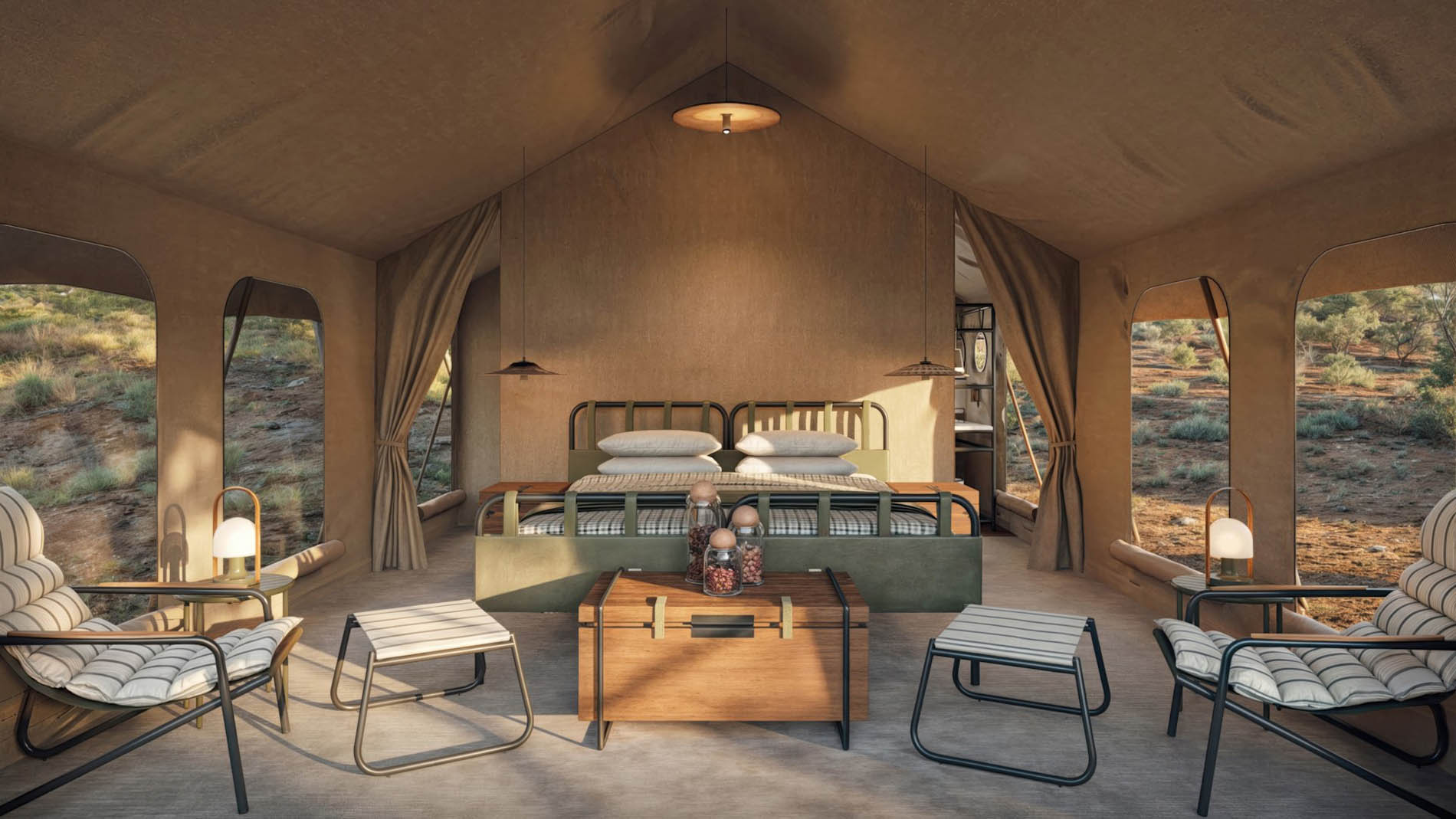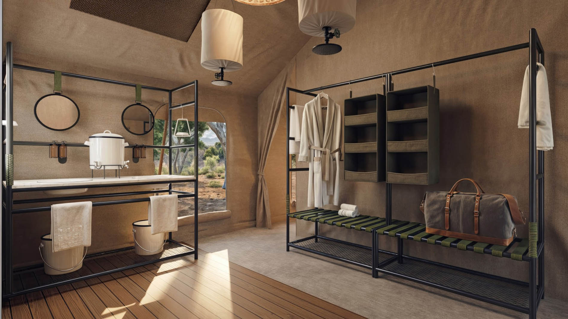 Sowohl andBeyond Sandibe Under Canvas als auch andBeyond Nxabega Under Canvas bestehen jeweils aus nur drei großzügigen Zelten und bieten Platz für maximal sechs Gäste. Diese bewusste Reduktion schafft eine intime Stimmung, in der jeder Aufenthalt persönlich wirkt. Die Zelte sind klassisch gehalten und dennoch durchdacht ausgestattet, mit festen Betten, En-suite-Badezimmern, separatem WC, warmen Duschen, Ventilatoren und WLAN.