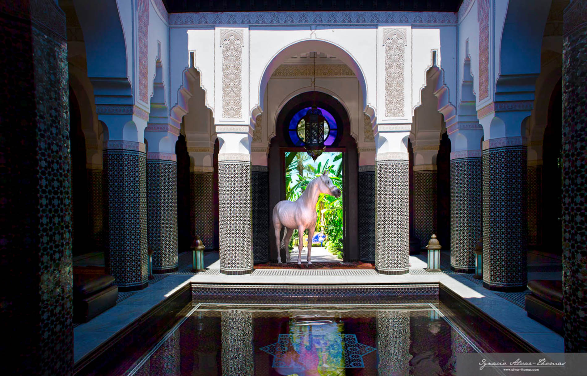 Das Interieur trägt die Handschrift von Jacques Garcia. Handgefertigte Zellij-Mosaike, Samt, warmes Licht und eine kuratierte Kunstsammlung erzählen von marokkanischer Handwerkskunst. 60 Zimmer und Suiten sowie fünf private Villen mit eigenem Garten und beheiztem Pool bieten Raum für Intimität und Stil. Die Villen eignen sich für Familien und Reisende, die maximale Privatsphäre suchen. Kulinarisch verwöhnt das Haus in fünf Restaurants. Assyl inszeniert marokkanische Küche mit abendlicher Pferdeperformance. Le Pavillon ist die Gartenadresse für leichte Gerichte und den legendären Sonntagsbrunch mit Pferdeshow. La Terrasse by Jean-François Piège serviert tagsüber mediterrane Küche mit französischer Note und marokkanischen Akzenten und verwandelt sich abends in eine elegante Bar für Apéritifs und Tapas. Le Pool bietet frische, farbenfrohe Gerichte direkt am Wasser. Ein besonderes Erlebnis ist SABO by Jean-François Piège, wo französische Haute Cuisine im Ambiente der Belle Époque auf marokkanische Finesse trifft.