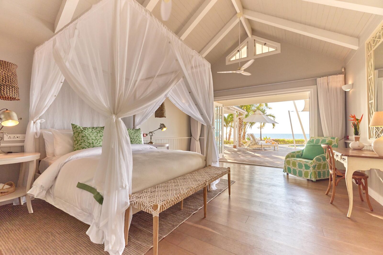 Im Herzen der Insel liegt die privat nutzbare Villa. Sie ist ein elegantes Strandhaus mit entspannter, maritimer Stimmung. Großzügige Fensterfronten öffnen sich über ein umlaufendes Holzdeck mit 180-Grad-Blick auf den Indischen Ozean. Innen verbinden sich weiß gekalktes Holz, handgefertigte Möbel und moderne Annehmlichkeiten zu einer Atmosphäre, die leicht wirkt und gleichzeitig sehr privat. Die Villa verfügt über eine gläsern eingefasste Infinity-Pool-Terrasse, eine Bibliothek mit einer kuratierten Sammlung von Ernest Hemingway, ein klimatisiertes Fitnessstudio, einen Weinkeller mit ausgewählten Jahrgängen und sogar ein privates Aquarium. Jede der fünf großen en-suite Schlafzimmer-Suiten bietet ein King-Size-Bett, einen Lounge-Bereich, Klimaanlage sowie Innen- und Außendusche mit Regeneffekt. Für Familien mit Kindern können in den Suiten zusätzliche Betten vorbereitet werden.