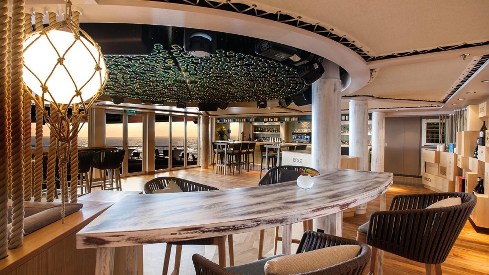 - Sansibar: Outdoor-Bar am Heck, Sundowner-Spot mit ikonischem Flair.