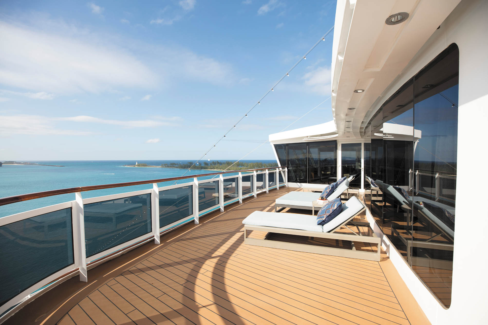 Die Seven Seas Explorer® verfügt über großzügige Sonnendecks mit Pool, Whirlpools und ruhigen Loungebereichen. Auf der Joggingstrecke laufen Sie mit Blick auf den Ozean, im Fitnessstudio trainieren Sie mit modernsten Technogym-Geräten oder nehmen an Kursen für Yoga, Pilates und Aerobic teil.