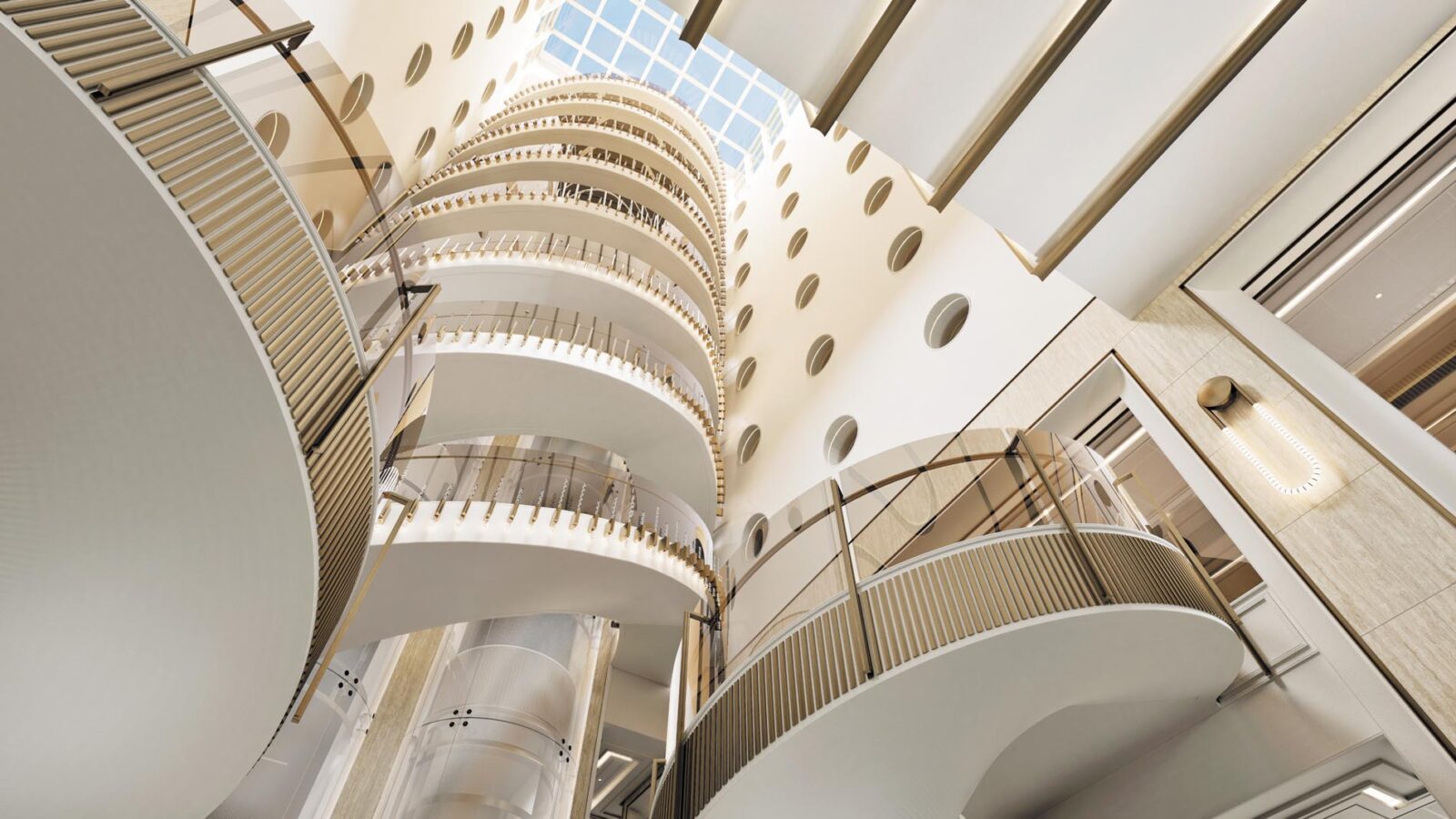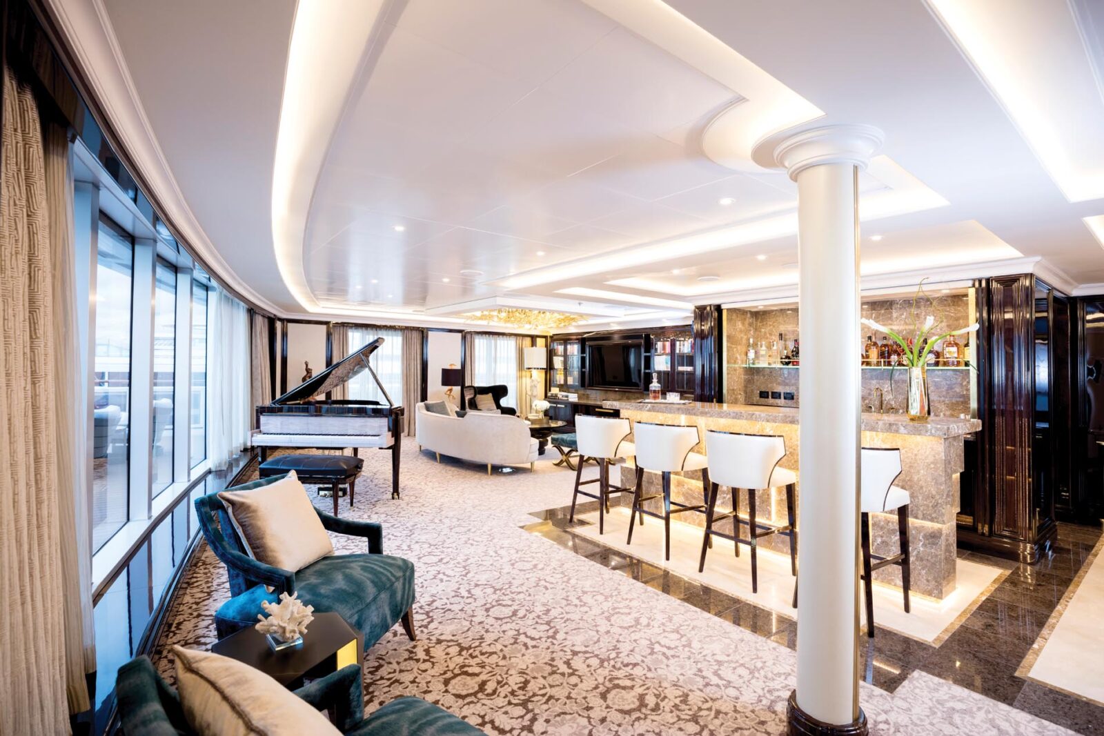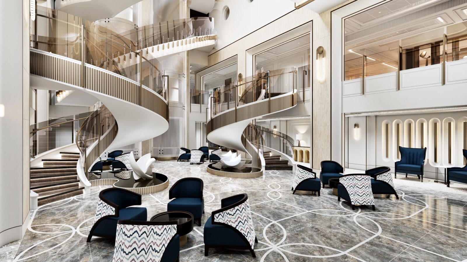 Das Design verbindet klassische Grandezza mit moderner Klarheit. Herzstück ist das Starlight Atrium: ein lichtdurchflutetes Entrée mit gläsernem Oberlicht und geschwungenen Doppeltreppen – mehr Grandhotel als Schiff, mehr Salon als Lobby. Hier treffen edle Materialien auf schweifende Blickachsen; eine Bühne für das, was die Prestige™ ausmacht: Eleganz, Ruhe, persönliche Freiheit.