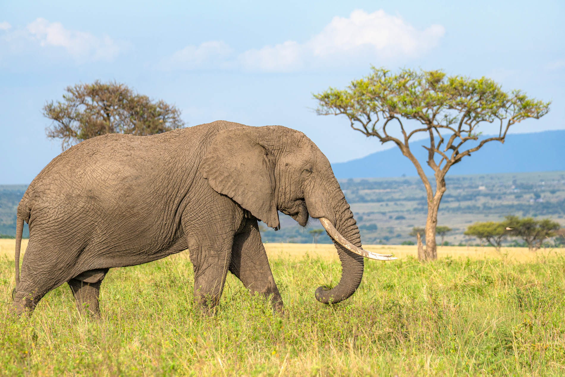Am Wilson Airport besteige ich ein kleines Propellerflugzeug Richtung Masai Mara. Es ist ein außergewöhnliches Gefühl, die Millionenmetropole Nairobi hinter mir zu lassen und Stück für Stück in die Wildnis einzutauchen. Unter mir ziehen kahle Ebenen, Schluchten und unendliche Weiten vorbei, bis sich – nach etwa einer Stunde – die unverwechselbare Landschaft des Masai Mara Nationalparks öffnet. Ein Glücksgefühl durchströmt mich, als ich die ersten Tiere aus der Luft sehe, in ihrer natürlichen, geschützten Umgebung.