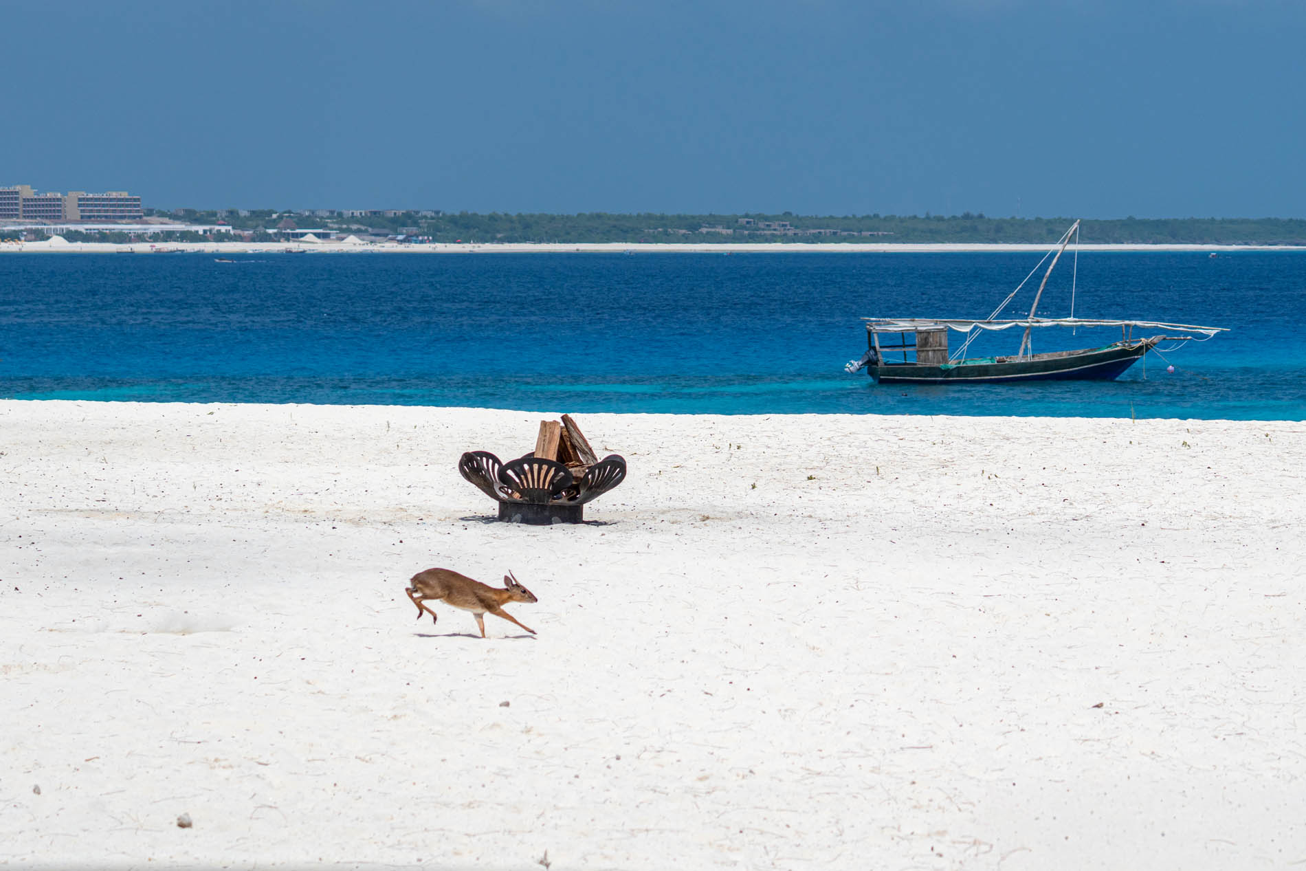 Nach erlebnisreichen Tagen in Kenia geht es mit zwei Flügen nach Sansibar weiter. Die Übergangsjacke wandert in meine Tasche, denn jetzt beginnt der tropische Teil der Reise. Nach einer Zwischenübernachtung geht es am nächsten Tag weiter in Richtung Norden. Ich ziehe meine Schuhe aus und gelange über den Strand ins Boot. Von hier aus gleite ich über das türkisfarbene Wasser nach Mnemba Island – eine Barfuß-Insel, umgeben von weißen Puderzuckerstränden und kristallklaren Lagunen.