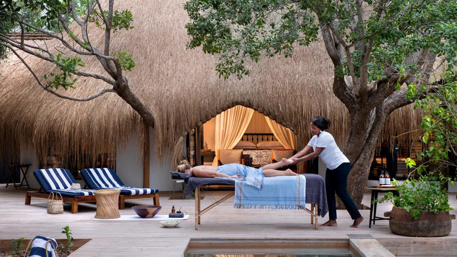 Tagsüber erkunden Sie das umliegende Meeresschutzgebiet beim Schnorcheln oder Tauchen am Korallenriff. Die Unterwasserwelt ist farbenreich und lebendig. Wer mag, reitet entlang der Wasserkante, segelt mit einer traditionellen Dhow durch die ruhige See oder probiert Catch and Release Deep Sea Fishing. Am späten Nachmittag färbt sich der Himmel kupferfarben. Die Dhow gleitet lautlos, und Sie spüren, wie diese Reise vom Abenteuer in die Ruhe übergeht. Ein idealer Ausklang für Paare, die Privatsphäre schätzen, und für Reisende, die nach intensiver Safari bewusst ankommen möchten.